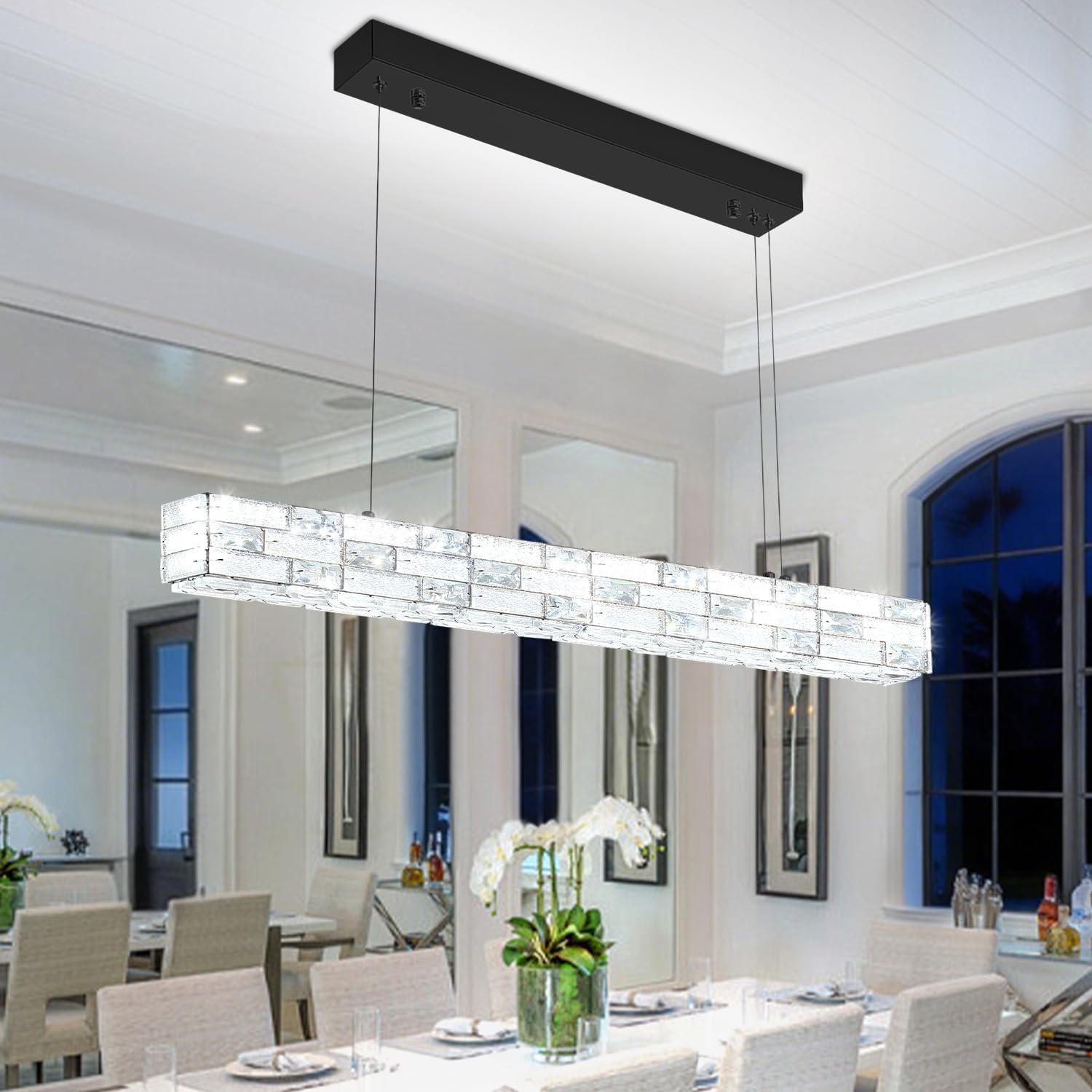 Modern Rectangular Silver Crystal Chandelier, Linear Island Pendant Light Fixture 32" Length, Luxury Crystal Dining Room Chandelier for Kitchen Island Living Room