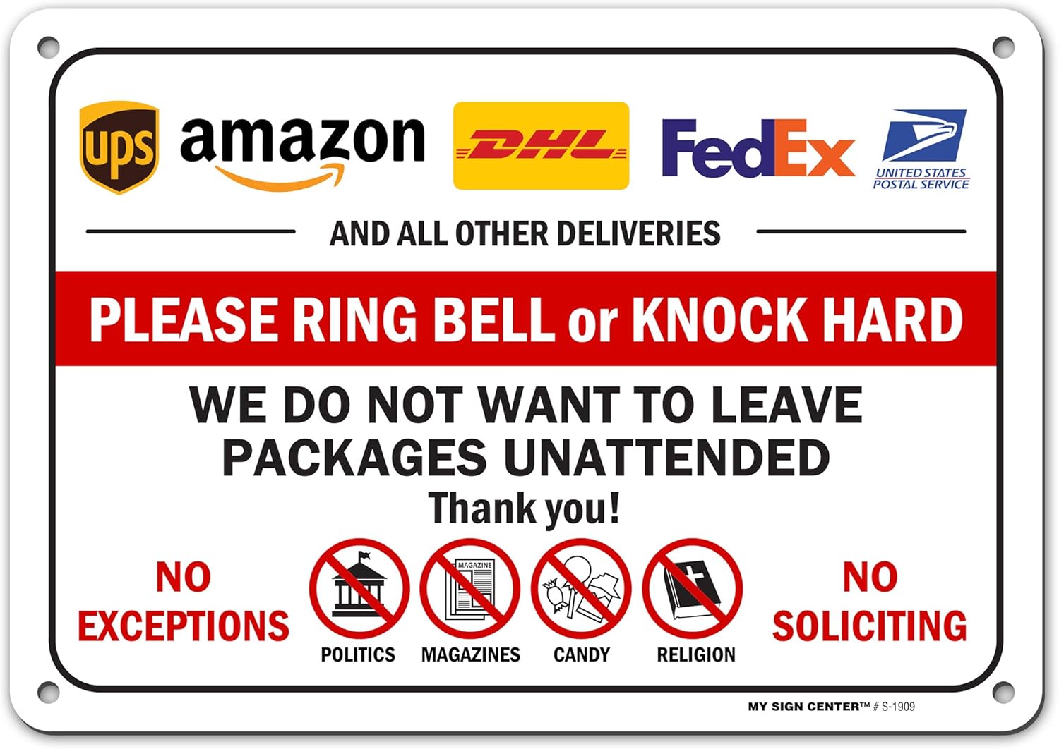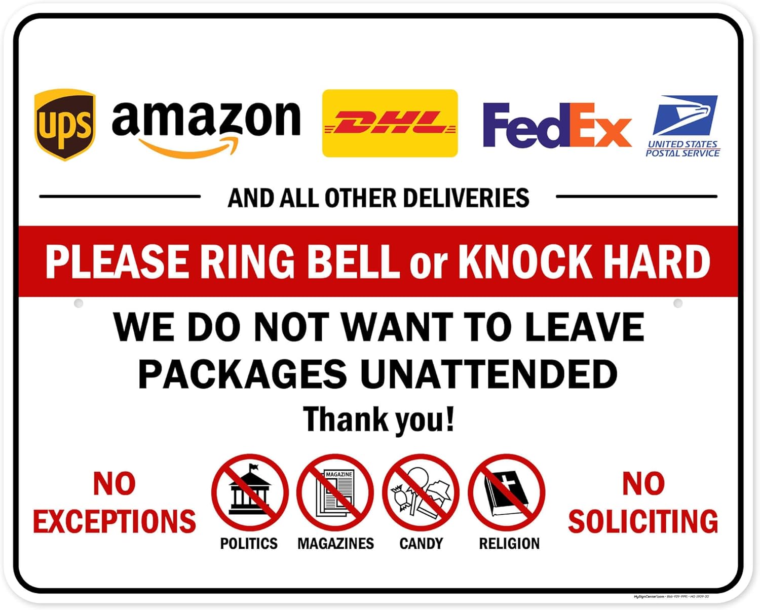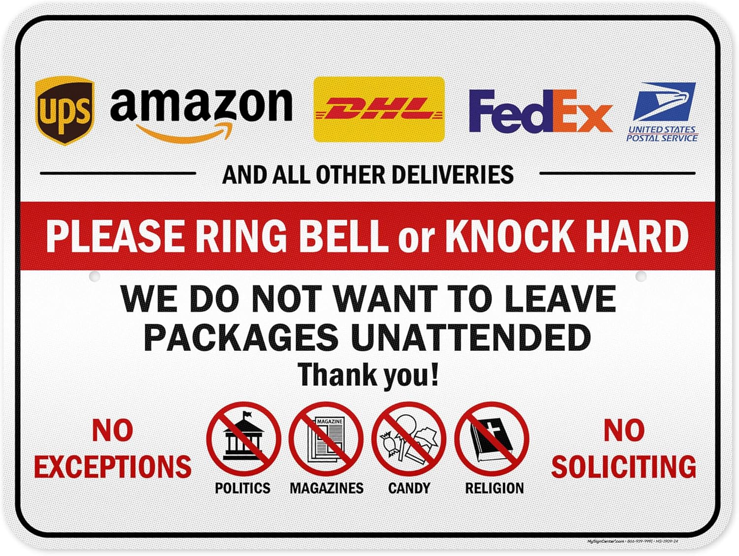 Please Ring Bell Or Knock Hard We Do Not Want To Leave Packages Unattended Sign, 18x24 Inches, 55 mil thick HDPE (high density polyethylene), Made in USA by My Sign Center