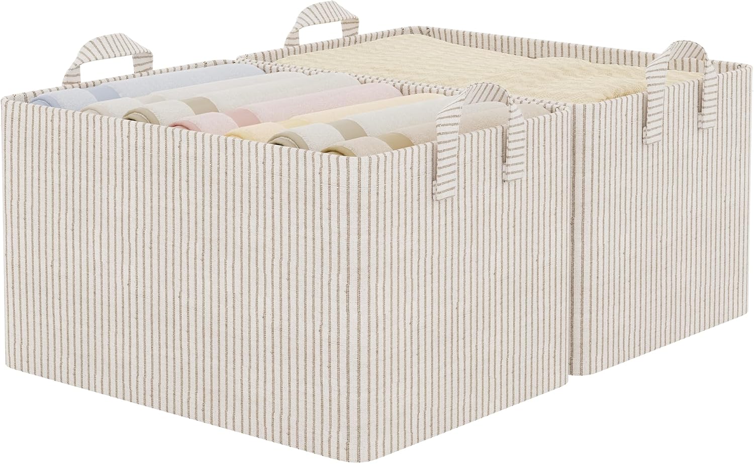 • Generous Capacity: Designed as large storage baskets for everyday organization and storage, they neatly hold clothes, towels, blankets, toys, and more.