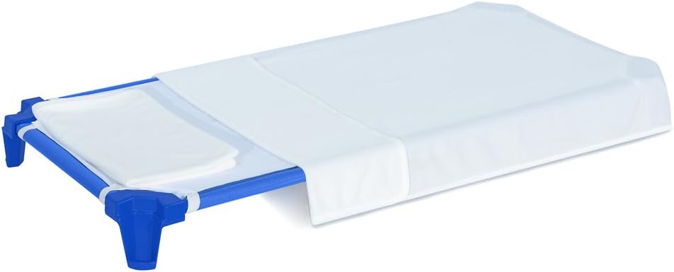 Preserve valuable classroom space with Wood Designs' space saving cot design. Children will rest comfortably with strong anti-sagging vinyl mesh fabric and extra strong ABS plastic for all corners featuring excellent impact resistance, strength, and toughness. Our cots are heavy duty, powder coated blue, with 16 gauge metal bars that won't bend from use, and a combination of heat sealed and sewn seams for ultimate durability. Vinyl mesh fabric is removable and machine washable with hook and loop closure at the foot end to ensure a taut sleeping surface. Exceeds CFT-115/116 Flammability standards. - GREENGUARD Gold certified. - Dimensions: 4.75"H x 52"W x 22.25"D. - Ready to assemble. - 10 Year Warranty